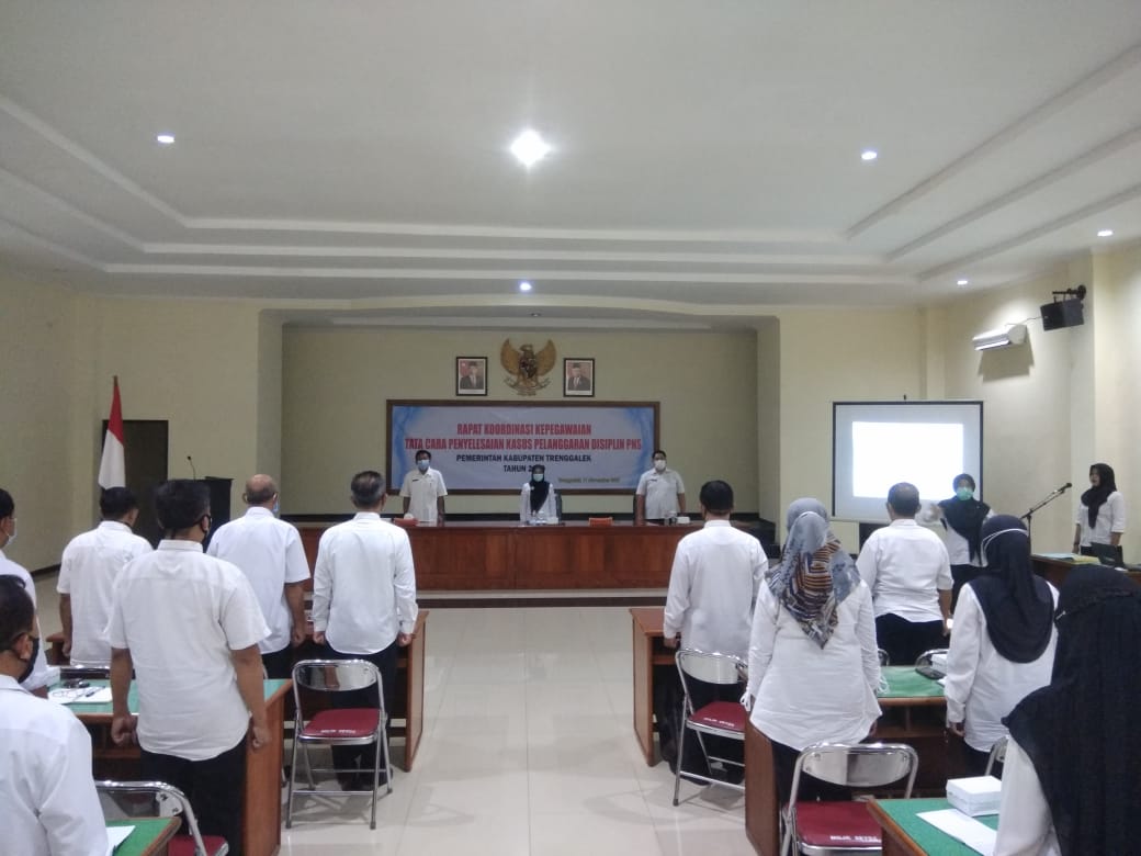 Sebagai tindak lanjut kegiatan ikrar netralitas PNS/ASN di lingkup Pemerintah Kabupaten Trenggalek yang telah dilaksanakan serentak pada tanggal 19 Oktober 2020 , maka Badan Kepegawaian Daerah (BKD) Kabupaten Trenggalek melalui Bidang Pembinaan dan Pengembangan Pegawai telah mengadakan rapat koordinasi tentang tata cara penyelesaian kasus pelanggaran disiplin. Kegiatan tersebut dilaksanakan selama 3 hari , yaitu tanggal : 10,11 dan 16 November 2020 dengan peserta para stakeholder yang menangani kepegawaian di instansi masing-masing.