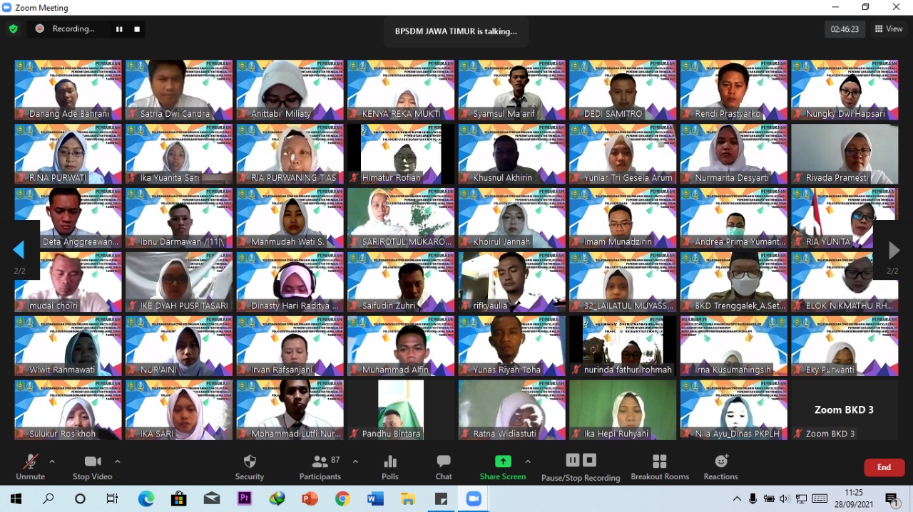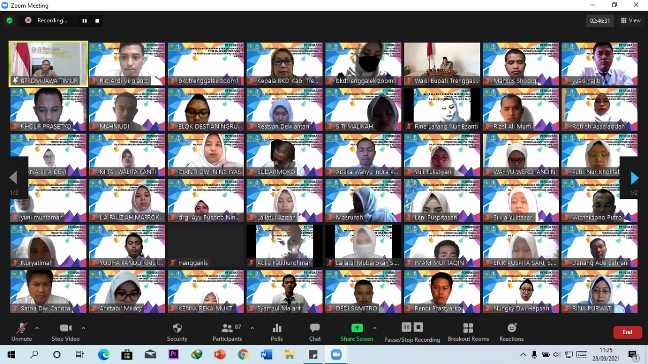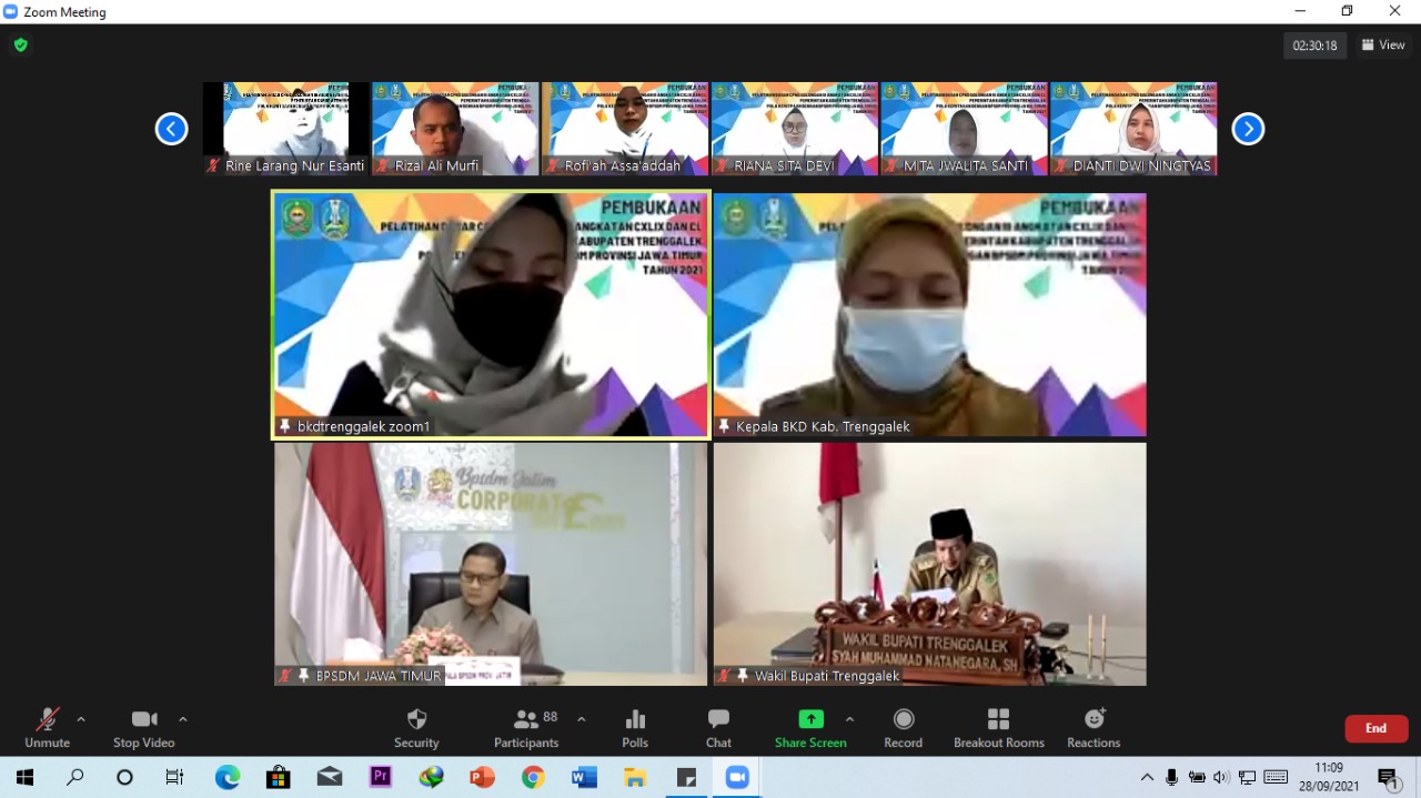 Bertempat di aula lantai II Kantor Badan Kepegawaian Daerah (BKD) Kabupaten Trenggalek pada Hari Selasa, 28 September 2021 dilaksanakan kegiatan pembukaan Pendidikan dan Pelatihan Dasar (Diklatsar) bagi CPNS golongan III angkatan ke-149 dan ke-150. Kegiatan ini diikuti oleh 80 orang CPNS, dan secara resmi dibuka oleh Wakil Bupati Trenggalek , Syah Muhamad Natanegara secara online / daring pada pukul 10.00 WIB